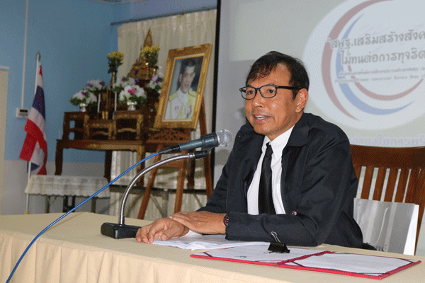 วันที่ 8 มี.ค.2560 เวลา 09.00 น. ณห้องประชุมสังข์หยด นายสุนาจ แก้วสุข ผอ.สพป.พท ๒ ประกาศเจตจำนงที่จะบริหารงานด้วยความซื่อสัตย์สุจริต มีคุณธรรม มีความโปร่งใส ปราศจากการทุจริต เพื่อให้สาธารณชนผู้รับบริการ และผู้มีส่วนได้ส่วนเสียมีความเชื่อมั่นต่อการดำเนินงานของสำนักงานเขตพื้นที่การศึกษาประถมศึกษาพัทลุง เขต ๒ และคณะข้าราชการ/ลูกจ้างสำนักงานเขตพื้นที่การศึกษาประถมศึกษาพัทลุง เขต ๒ ร่วมกันกล่าวคำปฏิญานตนในการต่อต้านการทุจริตทุกรูปแบบด้วยการขับเคลื่อนโครงการเขตพื้นที่สุจริต (พจนาถ ช่วยเนื่อง ภาพ/วาสนา ชูประวัติ ข่าว) |